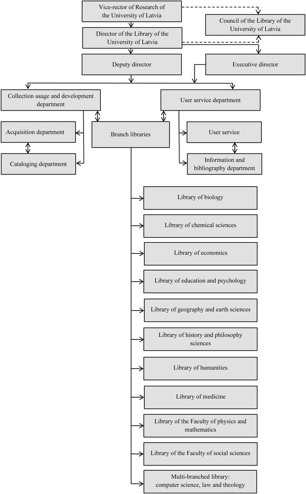 The structure of the Library of the University of Latvia was approved by decision of the Senate N 54 (27.12.04.). Changes in structure were made by order of Rector of the University of Latvia N 1/192 (08.07.09.).