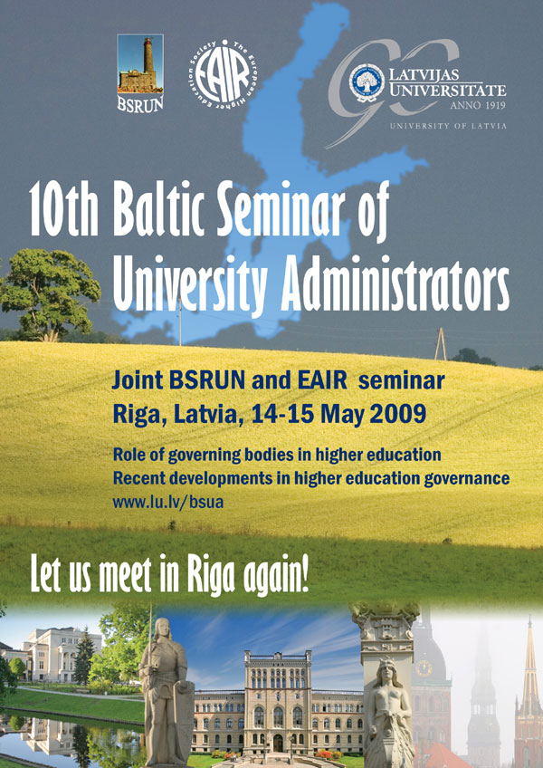 This is the slogan of the the 10th Baltic Seminar of University Administrators (BSUA), which will be organised by the Baltic Sea Region Universities Network in cooperation with EAIR on May 14-15, 2009 in Riga. The planned theme of the seminar is “Role of governing bodies in higher education. Recent developments in higher education governance“.