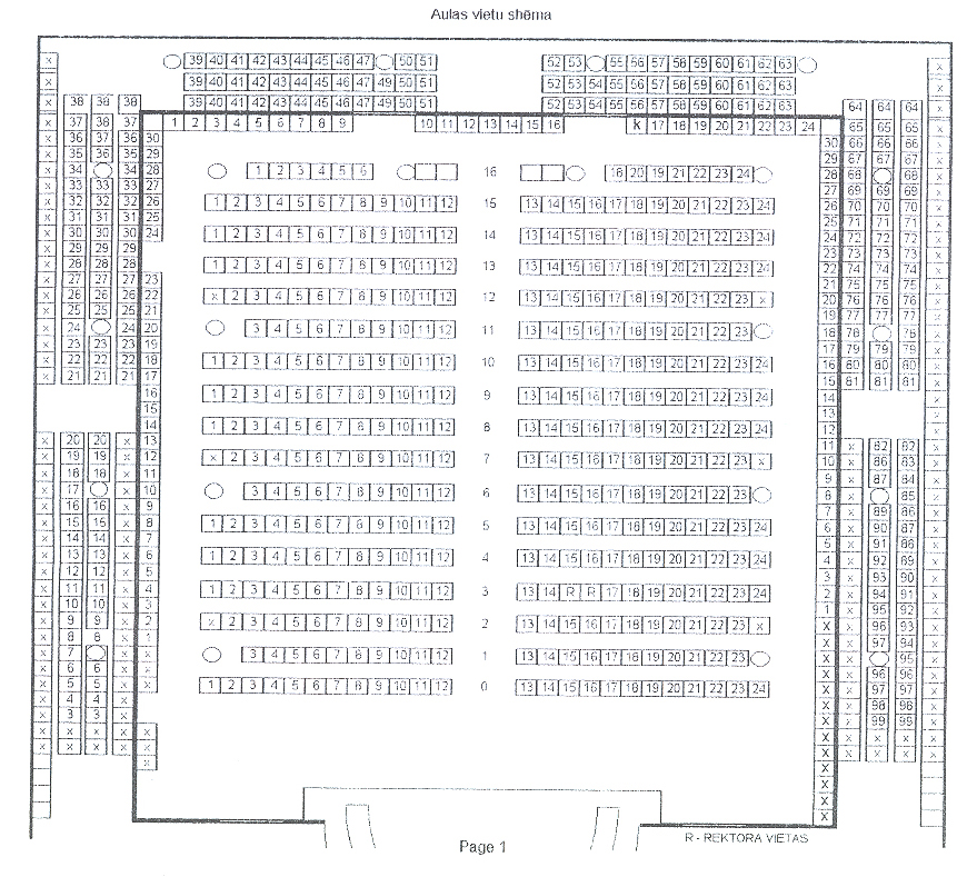 The Great Hall (then known as the New Hall) was opened and consecrated on September 28, 1935. As the University of Latvia gradually developed, the necessity for new facilities became an increasingly important issue. It was decided to rebuild the existing complex of buildings in accordance with the old architectural style to make it more useful. In 1929, a significant reconstruction of the main building was launched and, according to architect Ernests Štālbergs’ project, a cloakroom and canteen for students as well as other auxiliary premises in the basement were built in the inner courtyard. Two years later a new project was approved, planning to build a new celebration hall – The Great Hall – above the cloakroom. It is a monument characteristic of the architecture of the 1930s, revealing the functionalist simplicity of form with the help of stylized elements of classical architecture. The materials of exterior design chosen for the Great Hall were adapted to those previously selected by G. Hilbigs, demonstrating the scrupulous attention of E. Štālbergs to the initial idea of the building’s construction. The interior was designed symmetrically, placing columns and a balcony along the edges. A number of models from ancient architectural forms are seen, namely capitals and various ornamental motifs.