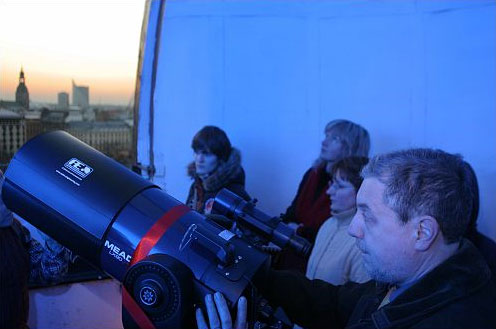 The University of Latvia Astronomical Tower is open for visitors on Wednesdays from 19:30 to 21:00 (except on public holidays) from October, 2010, to March, 2011. It offers demonstrations of celestial wonders – the moon, planets and stars with a 20-cm telescope. The entrance is free of charge and without prior notification. The sky watching takes place only if the sky is clear (the stars can be seen).