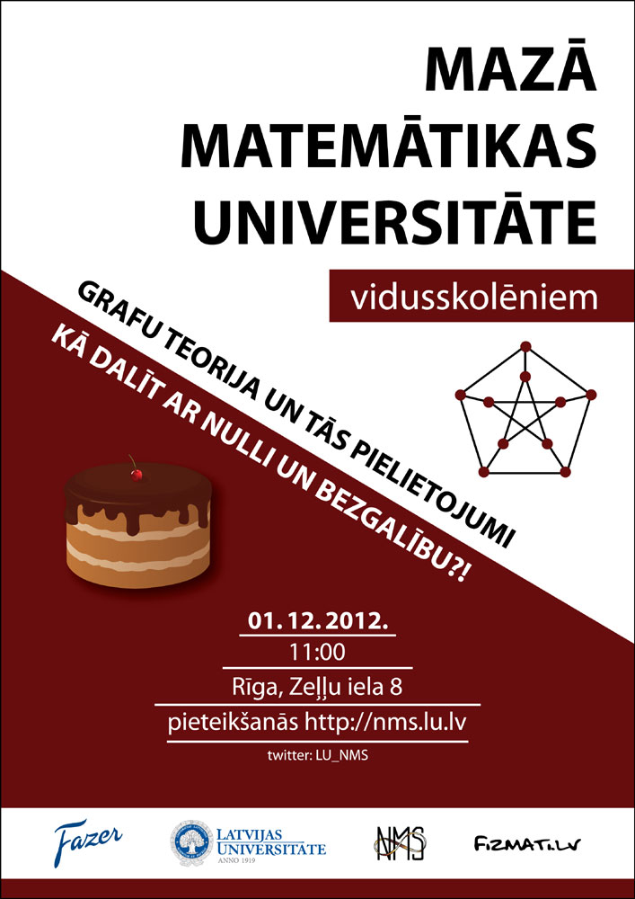 Šī gada 1. decembrī Latvijas Universitātes Fizikas un matemātikas fakultātes (LU FMF) telpās, Zeļļu ielā 8, notiks Mazās matemātikas universitātes (MMU) trešā nodarbība.