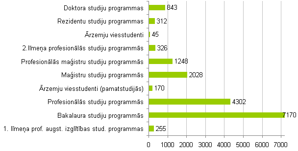 Studentu skaita sadalījums pa studiju līmeņiem 2013. gada 1. janvārī