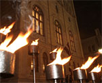 ![]() | Lāpas pie Latvijas Universitātes galvenās ēkas 2005. gadā |