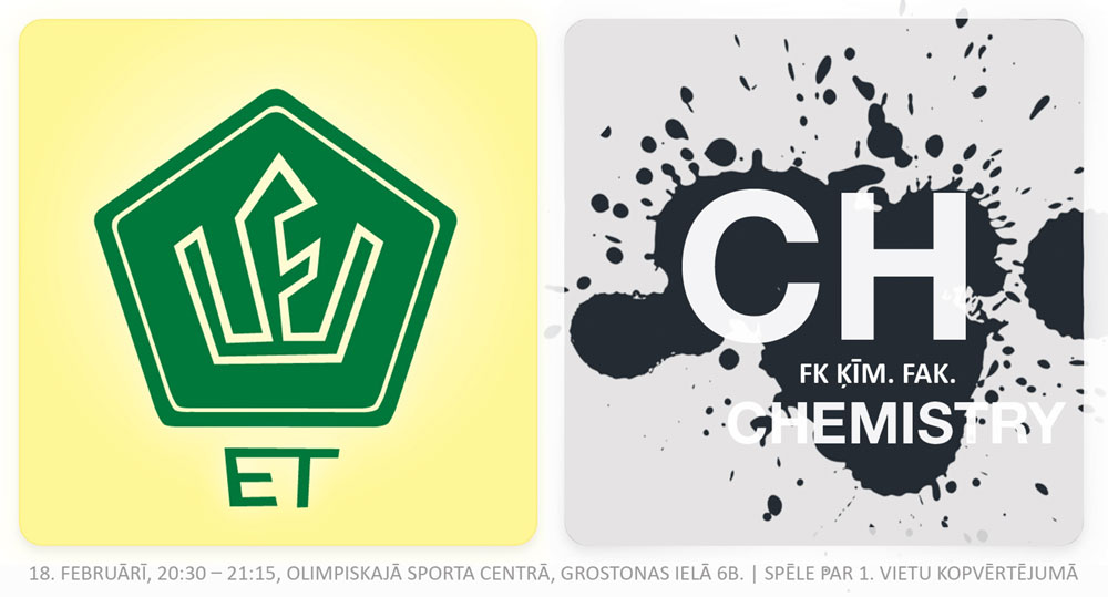 „Ķīmiķi” kopvērtējuma tabulā pēc visiem rādītājiem ir pirmajā vietā - bet ar divu punktu deficītu viņiem uz papēžiem min divkārtējie līgas čempioni „Erasmus Team”. Komandu pirmā savstarpējā spēle beidzās ar dramatisku neizšķirtu 3:3, kaut gan spēles lielāko daļu pārliecinoši vadībā bija FK Ķīm. Fak. Kopš iepriekšējās savstarpējās spēles FK Ķīm. Fak. sniegums ir kļuvis arvien pārliecinošāks, bet ET komandā ir notikušas sastāva izmaiņas, kuras pēdējā spēlē pret Komandas Dvēseli nodrošināja pārliecinošu uzvaru 7:3.
