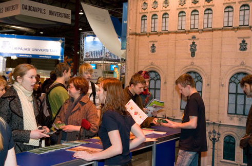 Pie LU stenda apmeklētāji pulcējās jau kopš izstādes atvēršanas. Divi no konsultantiem, vaicāti par ko pirmajā izstādes stundā interesējušies apmeklētāji, atzīst, ka ļoti daudzi jautājuši par ārstniecības studijām. Vēl jauniešus interesē valodu un datorikas studijas. LU Studentu servisa direktora vietniece Inta Jaunzeme atzina, ka viņa jau atbildējusi uz reflektantu jautājumiem par visiem studiju virzieniem, ko piedāvā Universitāte. Dažs esot sagatavots un pārliecināts par savu izvēli, bet daudziem tomēr par savu turpmāko izglītības ceļu nav ne mazākās nojausmas. Vairums jautātāju esot paši topošie studenti, bet gadoties arī, ka interesēties nāk vecāki.