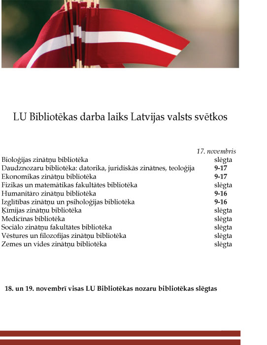 LU Bibliotēkas darba laiks Latvijas valsts svētkos