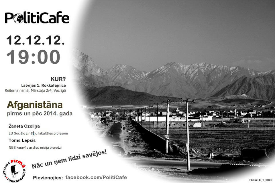 Žaneta Ozoliņa ir nesen atgriezusies no Afganistānas un savā priekšlasījumā sniegs savu analītisko skatījumu uz to, kādi ir panākumi un ar kādiem izaicinājumiem vairāk nekā 30 kara gadu plosītai valstij jāsastopas; kas notiks ar Afganistānu 2015. gada 1. janvārī; vai sabiedrotie turpinās sniegt atbalstu, un vai valsts vadība spēs uzņemties atbildību par attīstību visos līmeņos un jomās. Savukārt Toms Lepsis dalīsies ar iespaidiem par ģeopolitisko situāciju Afganistānā un divās misijās pieredzēto - ko Latvijas un citu valstu karavīri tur dara, un kāda ir viņu nozīme Afganistānas atjaunošanas procesā.