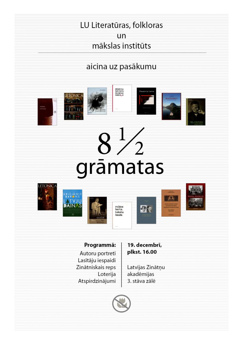 Latvijas Universitātes (LU) Literatūras, folkloras un mākslas institūts, atskatoties uz aizvadītajā gadā sasniegtajiem pētījumu rezultātiem, aicina uz grāmatu atvēršanas svētkiem „8 ½ grāmatas”, kas norisināsies 19.decembrī plkst. 16.00 Latvijas Zinātņu akadēmijas 3.stāva zālē.