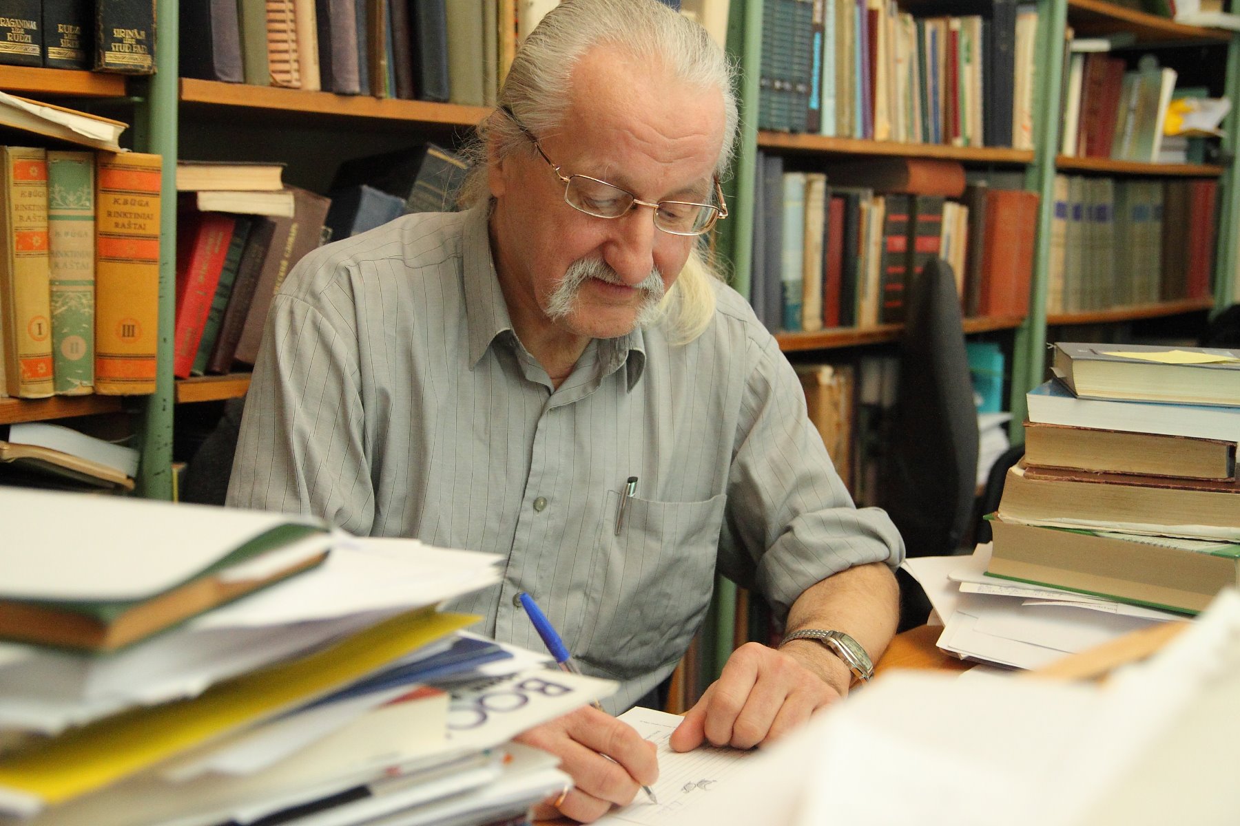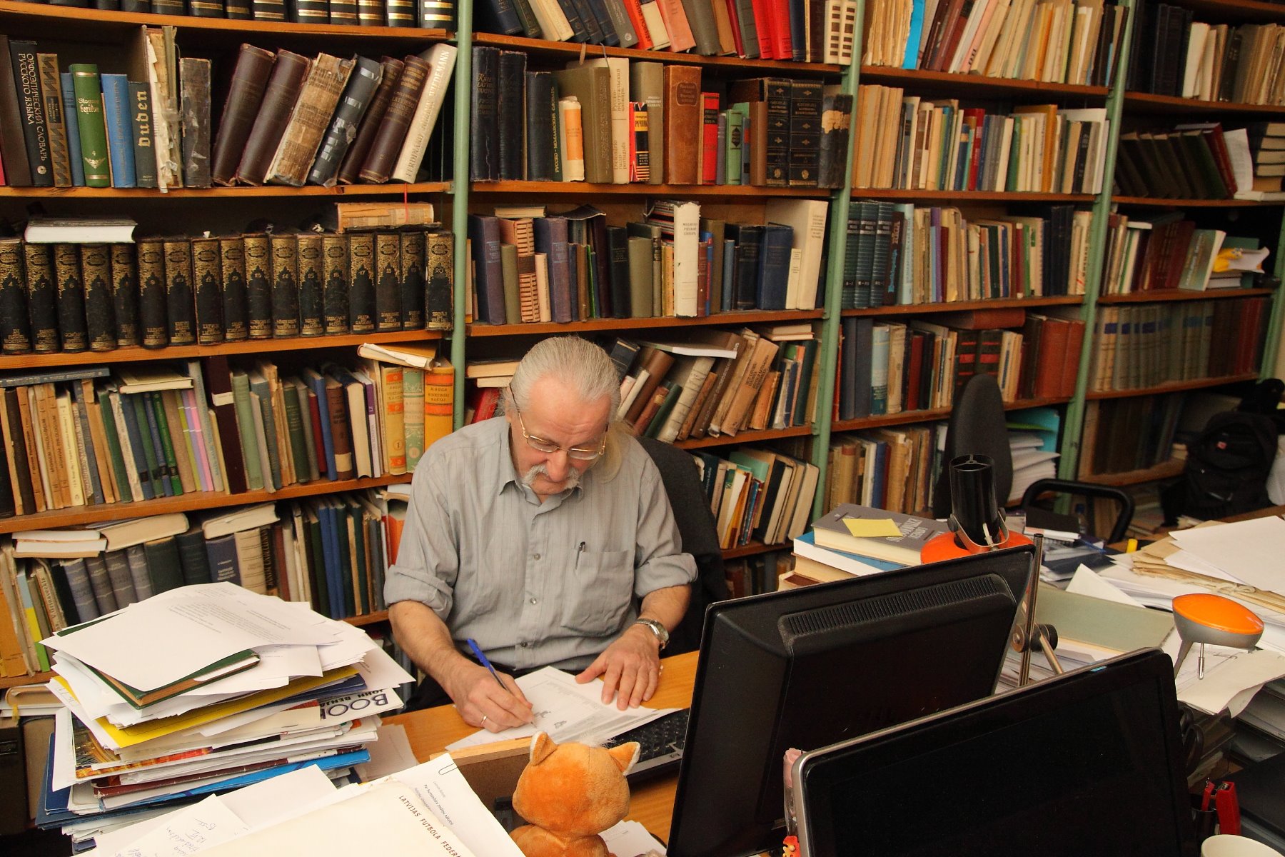 Aktīvākās darba stundas Latvijas Universitātes (LU) Latviešu valodas institūta direktores vietniekam Ojāram Bušam aizrit Latvijas Zinātņu akadēmijas 9. stāvā. Viņš ir poliglots, onomasts, valodas pētnieks un futbola fans vienā personā. No viņa kabineta loga paveras skats uz miglā tīto Ķengaragu un televīzijas torni.