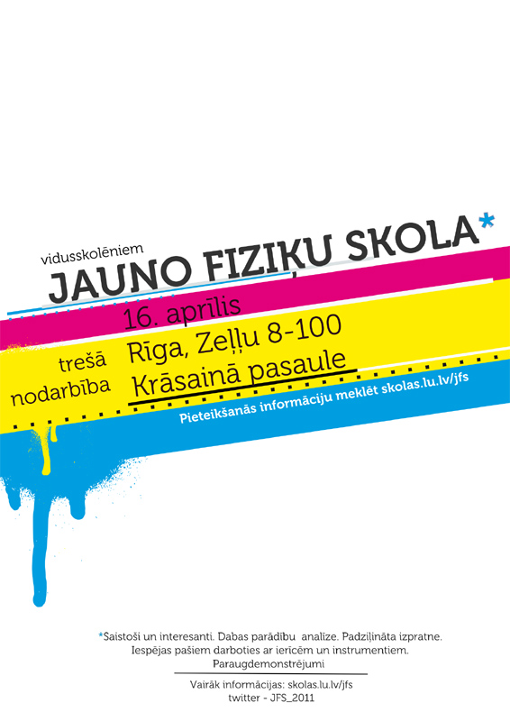 Jauno fiziķu skola turpina savu darbību. Nākošā nodarbība 16.aprīlī un tās tēma "Krāsainā pasaule".