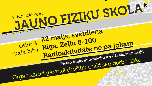 Šomēnes Jauno fiziķu skola noslēdz savu pirmo sezonu. Šoreiz nodarbība dažādu apstākļu dēļ notiks svētdienā, 22.maijā un tās tēma "Radioaktivitāte ne pa jokam".