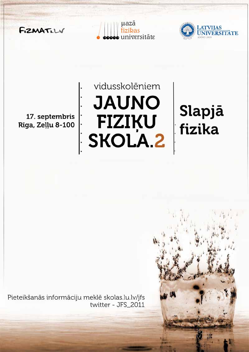 Šomēnes Jauno fiziķu skola uzsāk jauno - 2.sezonu. Sezonas pirmā nodarbība notiks 17.septembrī un tās tēma "Slapjā fizika".