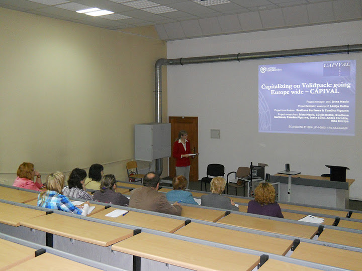 Šī gada 7. oktobrī Pedagoģijas, psiholoģijas un mākslas fakultātē LU Pedagoģijas zinātniskajā institūtā notika ekspertu tikšanās EK projekta Nr. 511883-LLP-1-2010-RO-KA4-KA4MP „Capitalizing on Validpack: going Europe wide – CAPIVAL” ietvaros.