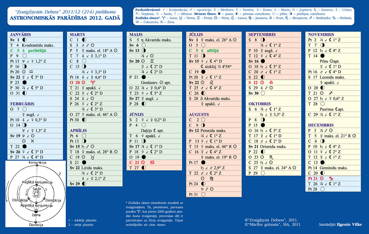 Pielikumā: Astronomiskās parādības un Planētu redzamības kompleksā diagramma 2012. gadam