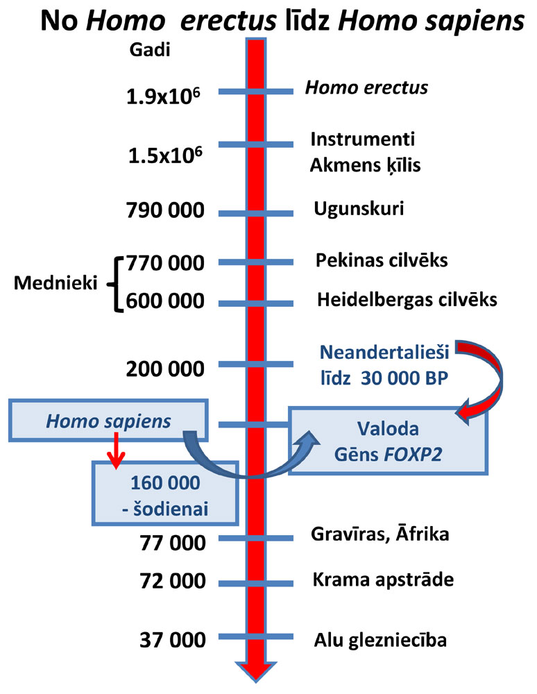 Beidzamo gadu dekādē molekulārās ģenētikas un arheoloģiskie atradumi dod jaunu ieskatu cilvēka evolūcijā. Pirms aptuveni septiņiem miljoniem gadu Āfrikā no primātu grupas atdalījās cilvēkveidīgās būtnes – Homo. Miljonu gadu evolūcijas procesā vairāki Homo atzarojumi aizgāja bojā. Pirms aptuveni diviem miljoniem gadu, akmens laikmeta sākumā hominīdu grupā izveidojās Homo erectus, kuru uzskata par mūsu senāko priekšteci.