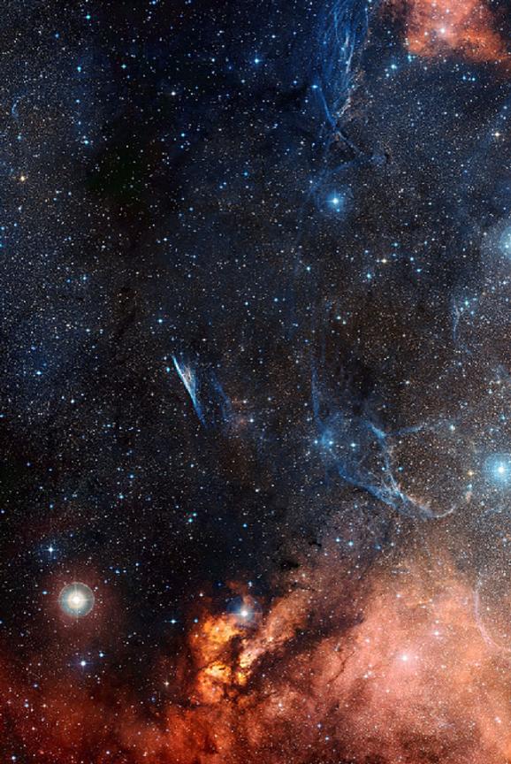 - 4. att. Buru (Vela) supernovas atliekas redzamajā gaismā „slota” manāma kā garens spīdeklis kreisajā apakšējā stūrī visai tukšā debess laukā. Astronomy Picture of the Day, 2007 February 13, Digitized Sky Survey, ESA/ESO/NASA FITS Liberator; Davide De Martin (Skyfactory) apod.nasa.gov/apod/ap070213.html