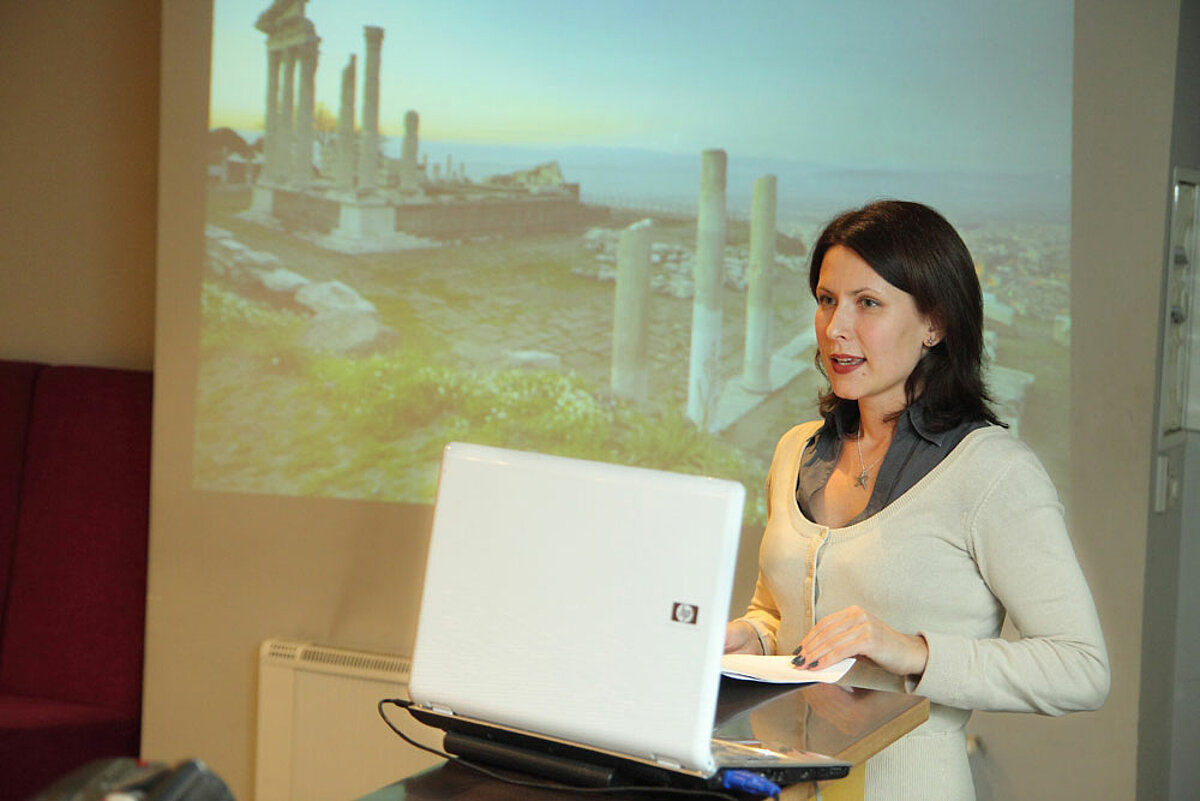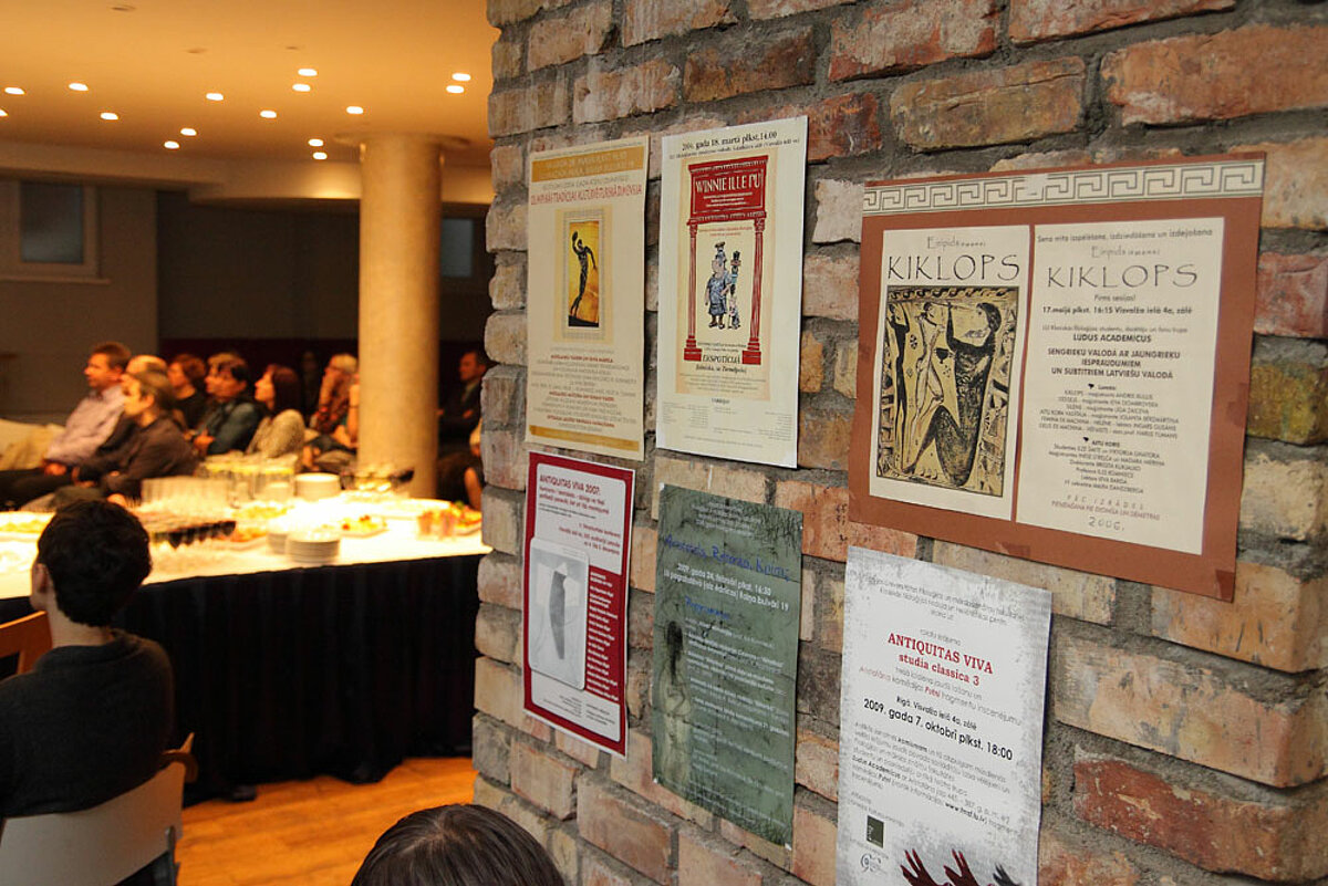 Entering the cafe, every visitor of the celebration party was able to view a nicely arranged book and poster display showcasing the Center’s development and accomplishments during the decade. In fact, every present or potential friend of Hellenic studies could see for themselves the Centre’s persistent growth and improvement, which attracts more and more fans of the Hellenic world. The Centre has always highly appreciated support of the Embassy of Greece to its mission and was privileged to welcome G. Hadzimihelaks, His Excellency Ambassador of Greece to Latvia. A true Hellenic spirit was introduced by Dr.Philol Brigita Aleksejeva in her lecture „ Pergamon in Berlin: antique perspective today”; she spoke about her experiences at the Pergamon Museum in Berlin and, in particular, about the unique exhibition dedicated to the ancient metropolis of Pergamon. The value of the lecture lies in its ability to combine the ancient with the modern, as well as to give an insight in exhibition pre-show work and challenges accepted by those who are in charge of precise and nuanced reconstruction of ancient realia. Professor Ilze Rumniece, Dean of the Faculty of Humanities and Ojars Lams, Head of the Department of Lettonic and Baltic Studies ( the Faculty of Humanities) remembered how the idea of the Centre took shape, and spoke about the Centre’s TOP 10 achievements. The Hellenic Center researchers have always managed to keep up with the nulla dies sine linealat.- no day without a written line), as the saying goes, paraphrasing in their own manner- no year without a book. This is the best time to greet all those putting a creative sparkle in book issuing. On the evidence of the past ten years, the opening of „Hellenic Dimension” complete works also took place in summer. In general the evening was fully enriched with travel, bygone, back-home high-spirited atmosphere. A decade is an important time for both the Hellenes and Hellenic experts; it took Odysseus exactly ten years to get back to Ithaca. Hardly anyone knows that Odysseus, after regaining his home, continued his journeys. How could it be explained? Maybe, his mission hadn’t come to an end. The same can be said about the Centre who will also keep pursuing its. It’s been just the first ten years of it.
