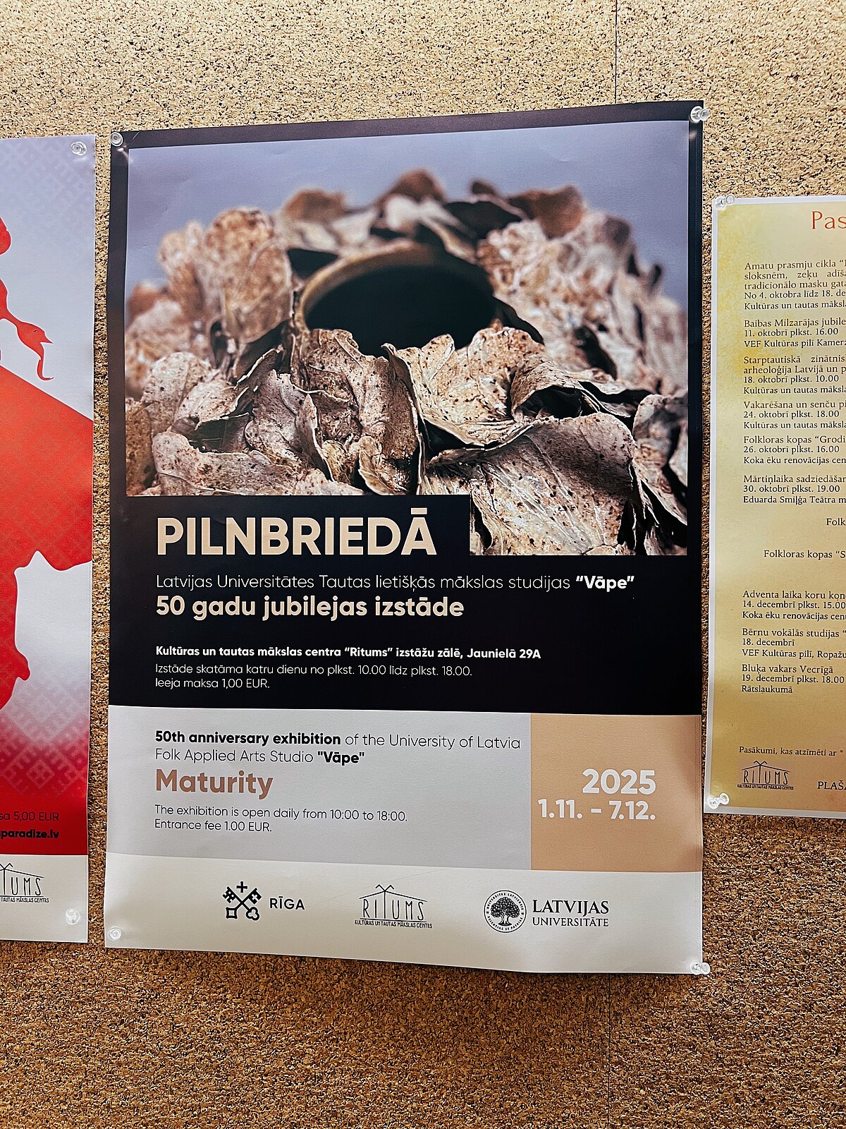 “Vāpe” ir viena no spilgtākajām Latvijas keramikas studijām un vienīgā, kas piesaistīta kādai no Latvijas universitātēm. Šogad tā svin savu 50 gadu jubileju, ko atzīmē ar izstādi “Pilnbriedā”, skatāmu līdz 7. decembrim Kultūras un tautas mākslas centrā “Ritums”.
