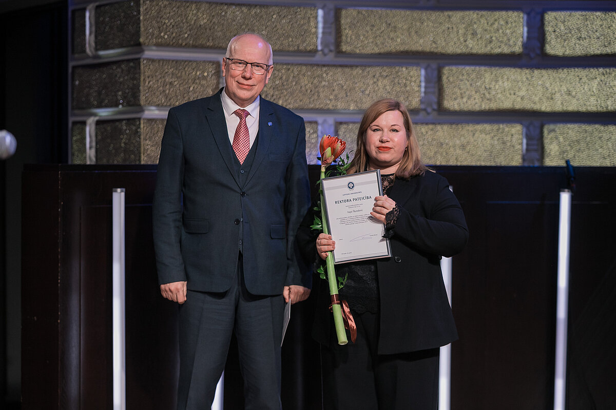 LU Institucionālās attīstības centra direktore Inga Šķendere, kas bija izvirzīta nominācijā “Gada darbinieks 2025”, saņēma vienu no divām rektora pateicībām par nozīmīgu ieguldījumu Latvijas Universitātes darba nodrošināšanā sarežģītos apstākļos.