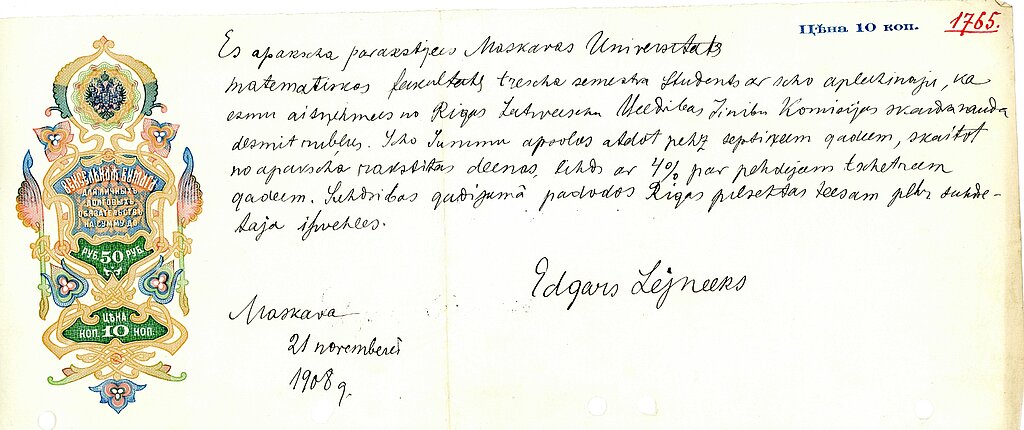 “Un tā 1910. gada 1. septembra rītā devos uz Rīgu. [..] Kad biju nokārtojies, iegāju arī RPI bibliotēkā un paņēmu uz māju pāris grāmatu. Tās nebija ķīmijas grāmatas, cik atceros, viena no tam bija par Puškinu un viņa laikmetu...”