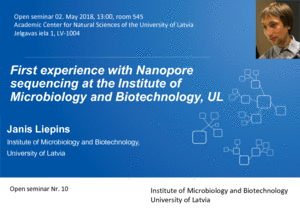 Janis Liepins group has got first impressions using Nanopore sequencing. He will share the experience in a lecture "First experience with Nanopore sequencing at the Institute of Microbiology and Biotechnology, UL".
