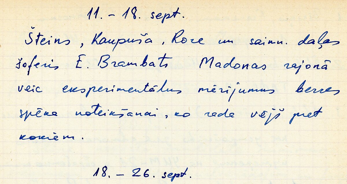 8. oktobrī eksperimentu turpināja – Elga Kaupuša, Leonids Roze, Jurijs Francmanis un Skaidrīte Stūre Cēsu apkārtnē meža novērošanas tornī veica vēja ātruma mērījumus dažādos augstumos. Oktobra vidū E. Kaupuša un L. Roze devās uz Cesvaini, kur radio un televīzijas tornī arī veica vēja ātruma mērījumus 140 metru augstumā. [5]