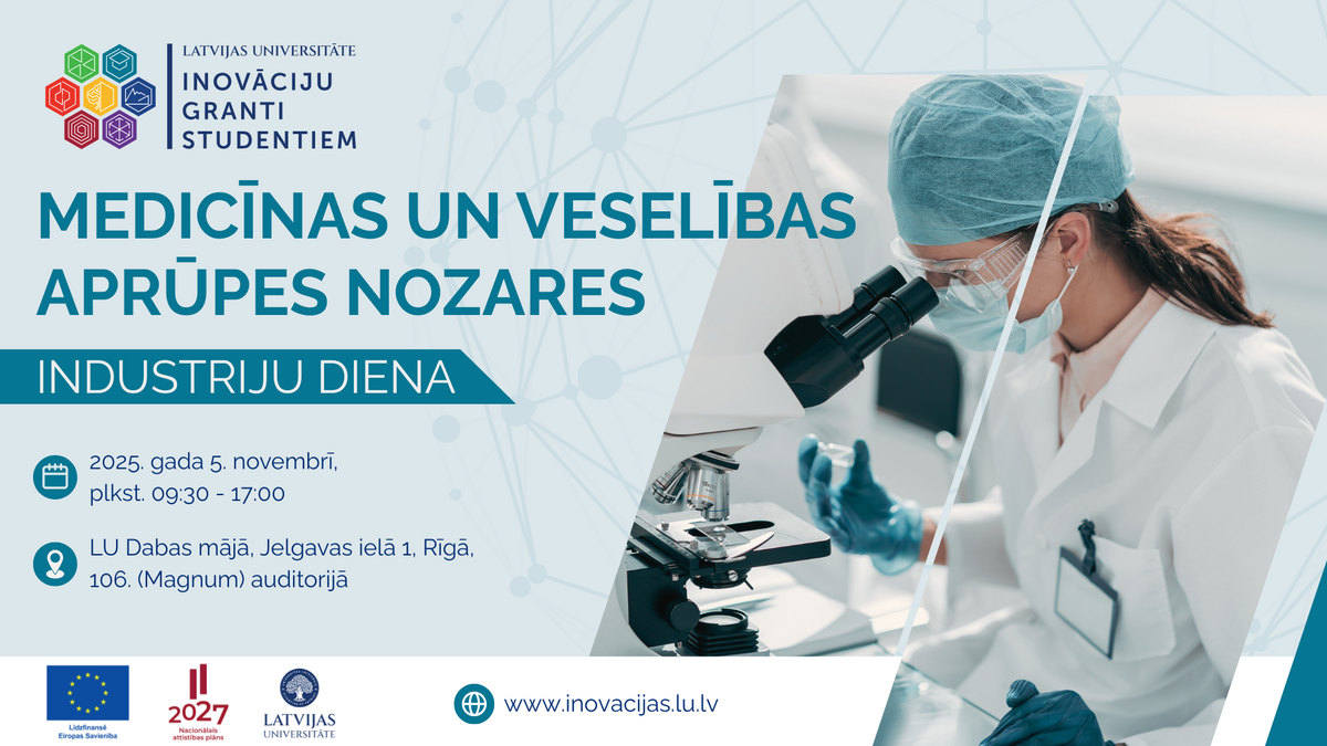 2025. gada 5. novembrī no plkst. 9.30 līdz 17.00 Latvijas Universitātes Dabas mājā, Jelgavas ielā 1, Rīgā, norisināsies Medicīnas un veselības aprūpes nozares industriju diena, ko organizē Latvijas Universitātes (LU) Inovāciju un akselerācijas centrs.
