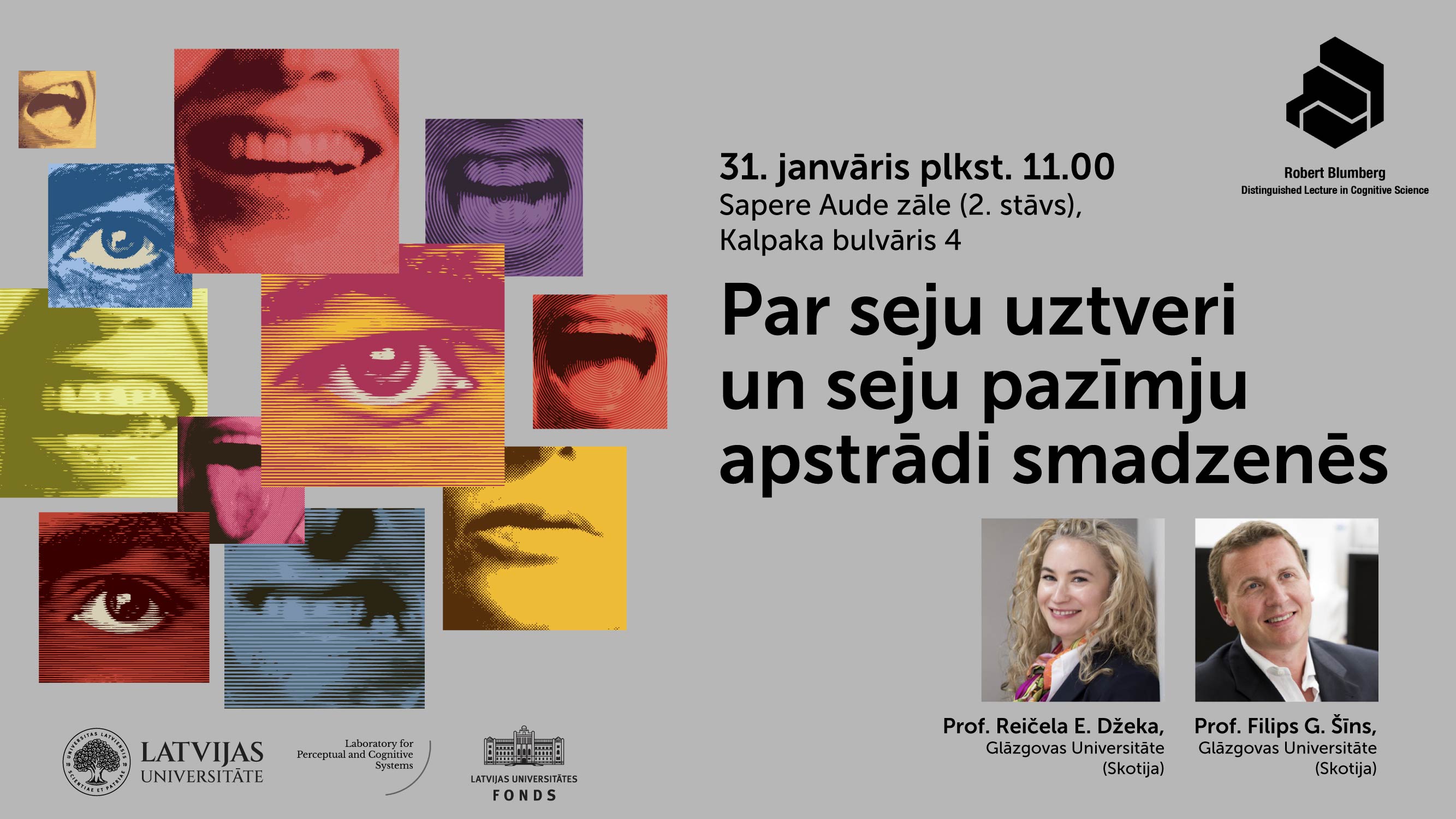 Otrajā lekcijā sestdien, 31. janvārī,“Par seju uztveri un seju pazīmju apstrādi smadzenēs” prof. Džeka uzstāsies kopā ar prof. Filipu G. Šīnu (Philippe G. Schyns). Abi profesori runās par seju uztveri, emocijām, eksperimentiem un par to, kas smadzenēs notiek, kad uztveram sejas un emocijas.
