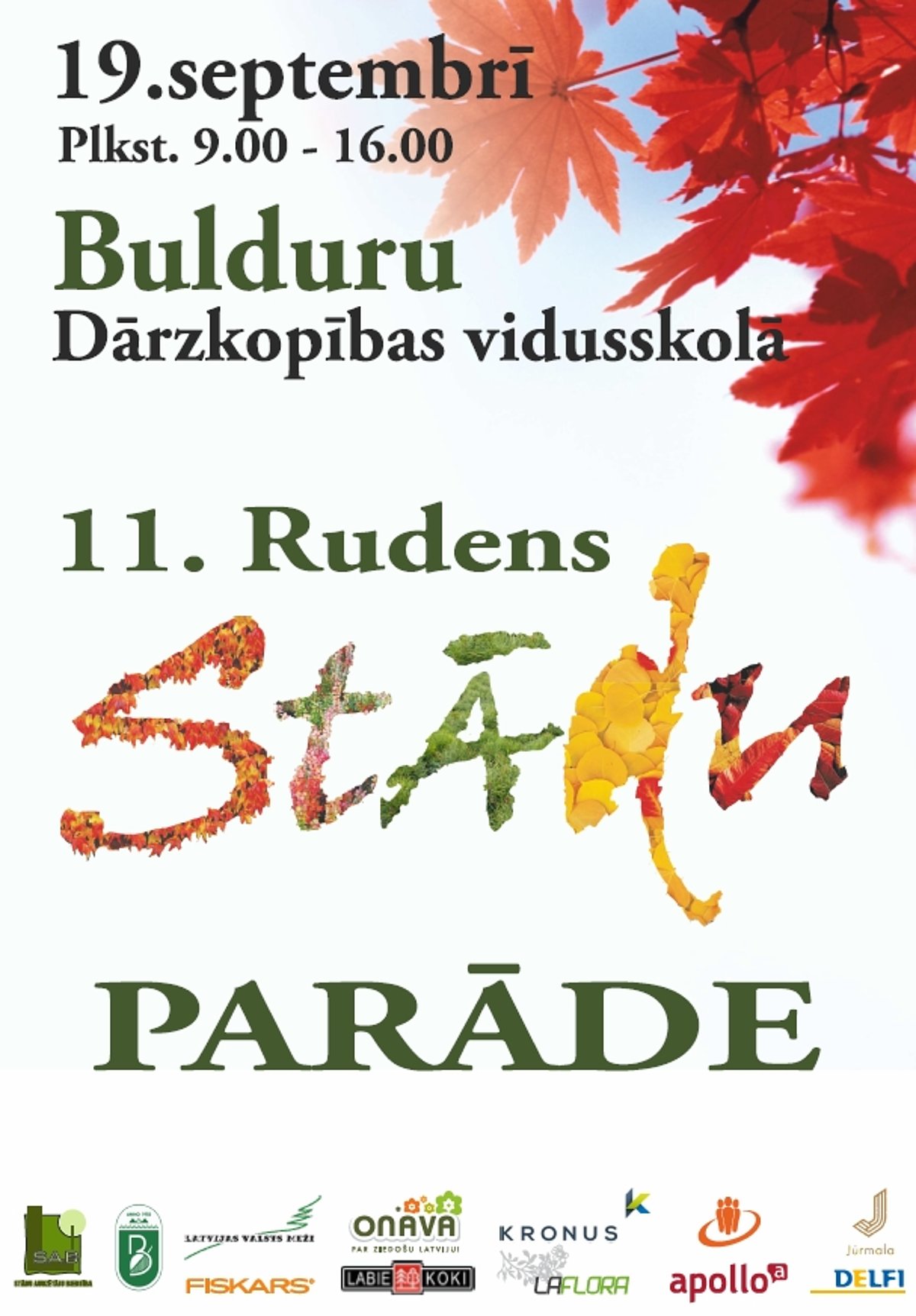 11. Rudens Stādu parāde notiks 2015. gada 19. septembrī Bulduru Dārzkopības vidusskolas stādītajā un veidotajā dārzā.