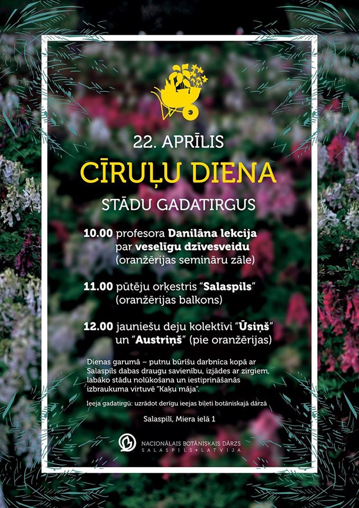 22. aprīlī Nacionālā botāniskā dārza pirmais – sezonas atklāšanas – stādu gadatirgus “Cīruļu diena”.