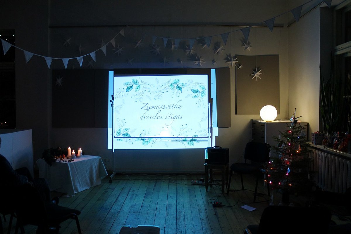 Svinīgajā pasākuma daļā valdīja mīļums un sirsnība studentu sarūpētajās bildēs un stāstos par bērnības Ziemassvētkiem un jaunākajām svētku tradīcijām. Ik pāris stāstu savijās ar Mikus Vīksnes ģitāras stīgu melodijām. Mūzika tā vien aicināja domās ļauties saviem dvēseles stāstiem par svētku mieru un burvību.