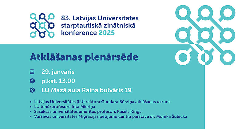 LU 83. starptautiskā zinātniskā konference notiks no janvāra līdz martam. Papildu informāciju un pilnu konferences programmu var atrast LU konferences tīmekļvietnē: https://konference83.lu.lv/.