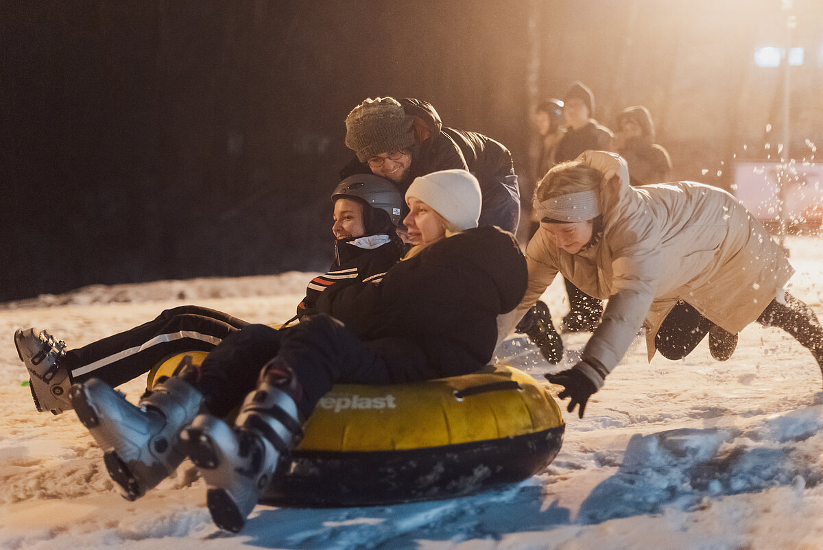 Papildus individuālajām aktivitātēm dalībnieki varēja piedalīties arī aizraujošā komandas disciplīnā – nobraucienā ar pūšļu kamerām. Šajā atraktīvajā sacensībā komandām bija jānobrauc no kalna pēc iespējas ātrāk. Par uzvarētājiem kļuva komanda “Palīgskolas izlaidums”, kas distanci veica 59,76 sekundēs. Otrajā vietā ar laiku 1:05 ierindojās komanda “Kas par sviestu”, bet trešajā vietā finišēja individuālais “sportists” Kristaps ar rezultātu 1:06.