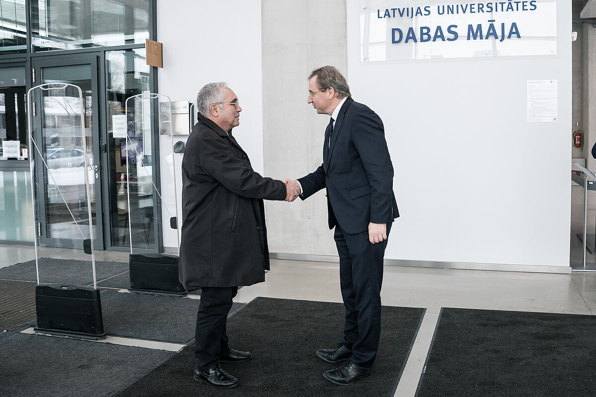 CERN padomes prezidentu LU Akadēmiskā centra Dabas mājā uzņēma LU rektors prof. Gundars Bērziņš, zinātņu prorektors Guntars Kitenbergs, attīstības prorektors Enno Ence un LU Padomes priekšsēdētājs Mārcis Auziņš. Sarunu centrā bija LU loma CERN sadarbībā, zinātnes kapacitāte un daļiņu fizikas attīstība Latvijā. Ar augsto viesi tikās arī LU Eksakto zinātņu un tehnoloģiju fakultātes (EZTF) dekāns Aigars Ekers, LU EZTF Ķīmiskās fizikas institūtu direktore Elīna Pajusta un LU Inovāciju akselerācijas centra direktore Gunita Deksne.