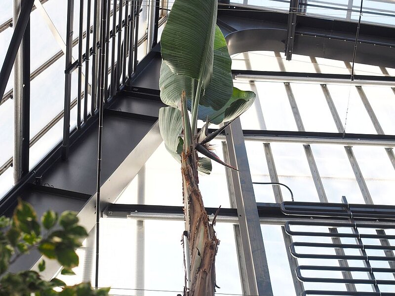 Papildus Nikolaja strelīcijai tās pakājē kopš decembra zied arī karaliskā strelīcija (Strelitzia reginae), kas izceļas ar izmērā mazākiem, koši oranžiem ziediem.
