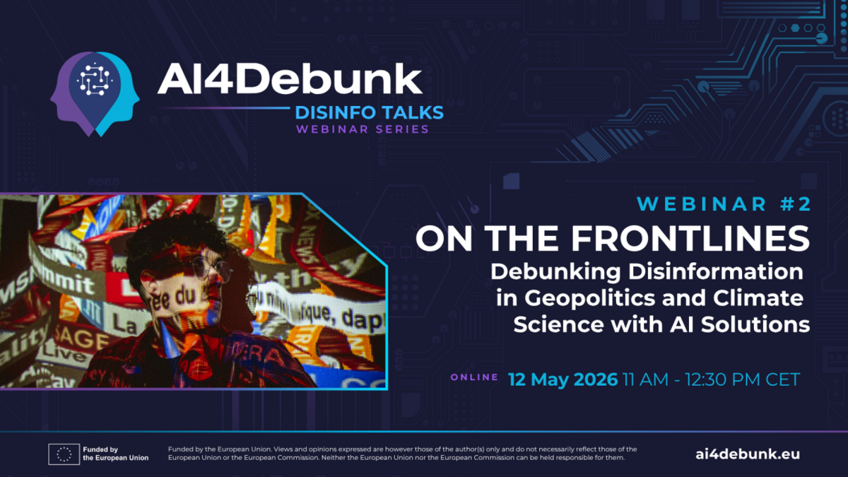 Vebinārs “Cīņas priekšplānā: kā ar MI risinājumiem atmaskot dezinformāciju ģeopolitikā un klimata zinātnē” ir viena no pasākumu sērijas "Disinfo Talks" norisēm un tā mērķis ir veicināt izpratni par dezinformācijas, viltus ziņu un propagandas radītajiem riskiem, vienlaikus uzsverot MI nozīmi cīņā ar šiem izaicinājumiem. Pasākumu sērijas ietvaros notiekošās diskusijas un prezentācijas ne tikai izgaismos aktuālos izaicinājumus, bet arī iepazīstinās ar pētniecības projektā izstrādātajiem inovatīvajiem MI risinājumiem un sekmēs sadarbību starp akadēmisko vidi, mediju profesionāļiem un politikas veidotājiem.