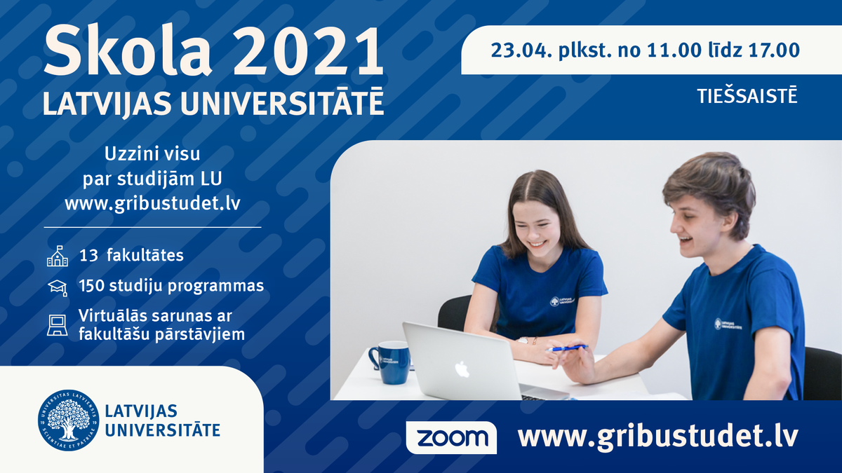 “Skola 2021 Latvijas Universitātē” notiks gribustudet.lv tīmekļa vietnē, bet individuālās un grupu sarunas tiks nodrošinātas Zoom platformā, kas topošajiem studentiem sniegs iespēju aprunāties ar savas fakultātes dekānu, studiju programmas direktoru vai studentu , lai uzzinātu pēc iespējas vairāk par izvēlēto studiju programmu.
