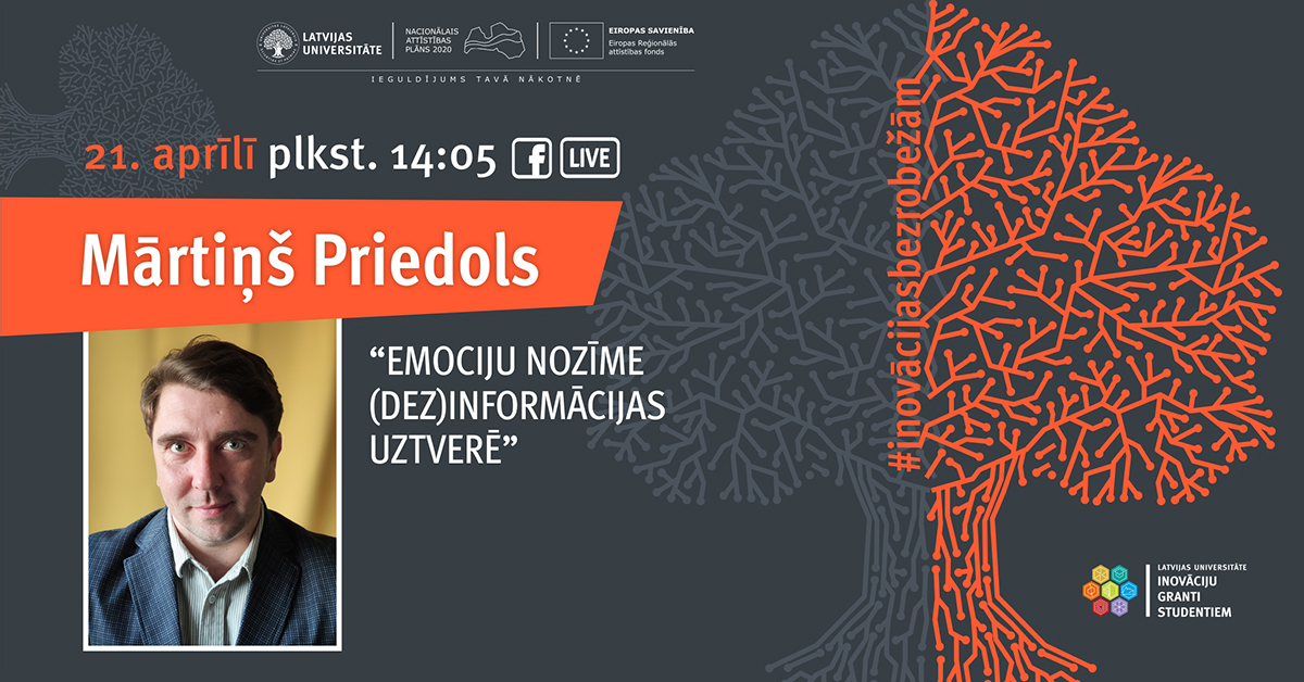 Mārtiņš Priedols, LU Pedagoģijas, psiholoģijas un mākslas fakultātes mācībspēks, dezinformācijas un informācijas uztveres pētnieks, pastāstīs, ko tas īsti nozīmē un kādēļ pat paši erudītākie cilvēki mēdz iekrist šķietami absurdu melu varā? Kāda nozīmē informācijas uztverē ir emocijām un kā rīkoties, lai neiekristu dezinformācijas slazdos.