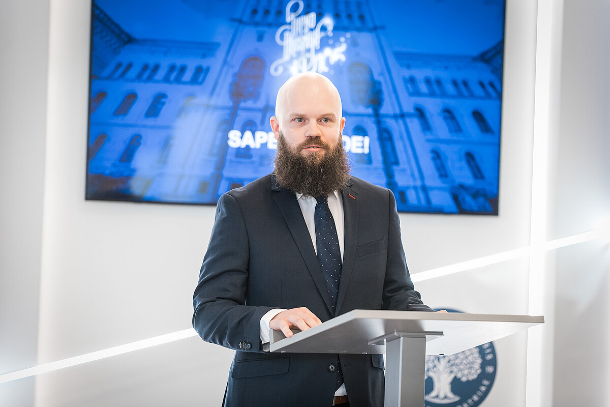 Klātesošos uzrunāja arī LU rektors prof. Gundars Bērziņš: “LU Doktorantūras skolas atklāšana LU 105. jubilejas ietvaros ir simbolisks solis mūsu ceļā uz izcilību un jauniem zinātnes sasniegumiem. Šodien LU doktorantūra atdzimst ar jaunu spēku, uzsverot sadarbību un starpdisciplinaritāti – tieši šajās sinerģijās dzimst inovācijas un atklājumi. Novēlu doktorantiem veiksmīgu, aizraujošu ceļojumu zinātnes pasaulē, kur "Sapere aude" kļūs par ikdienas iedvesmu!”