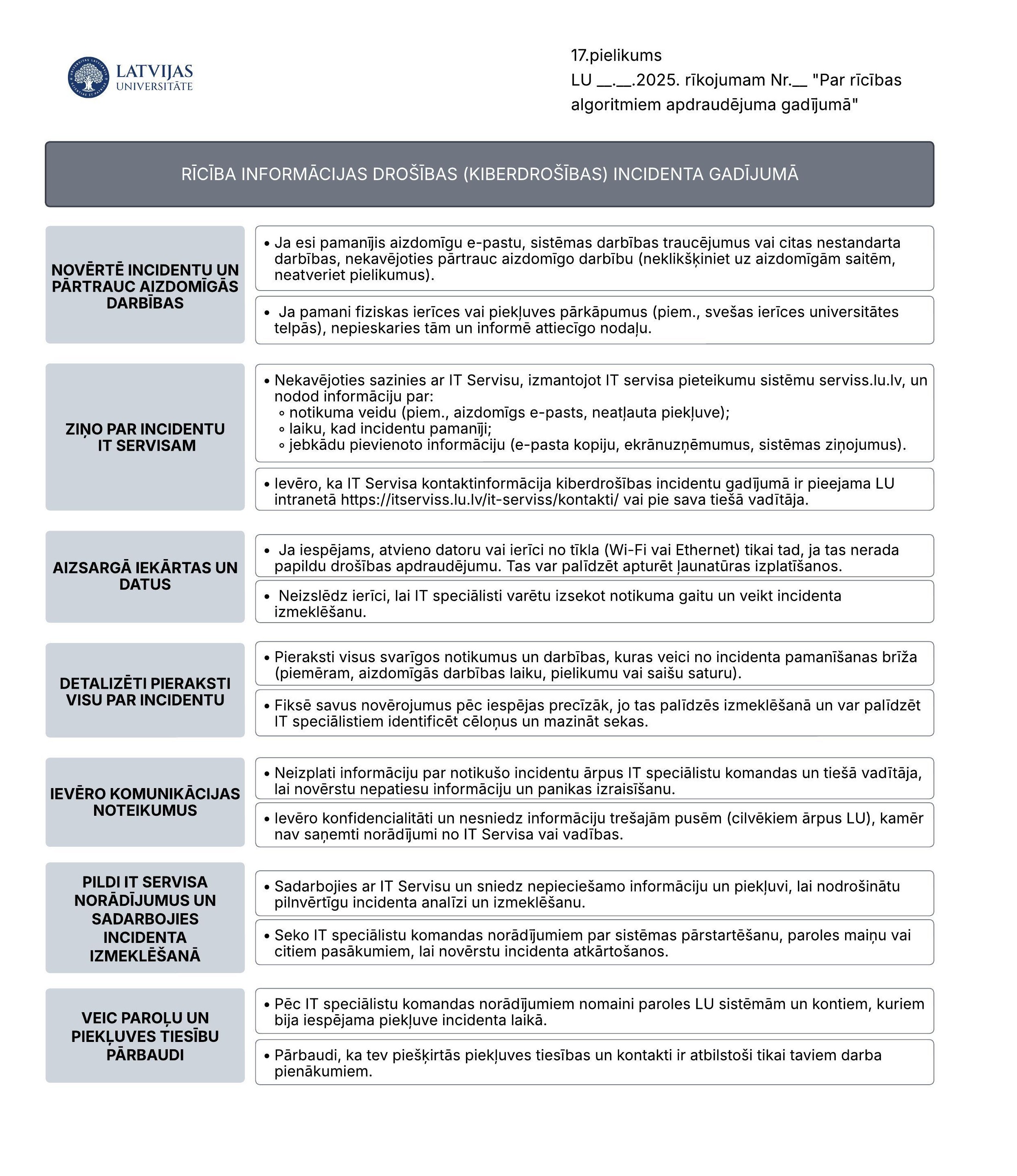 Rīcība Informācijas drošības (kiberdrošības) incidenta gadījumā